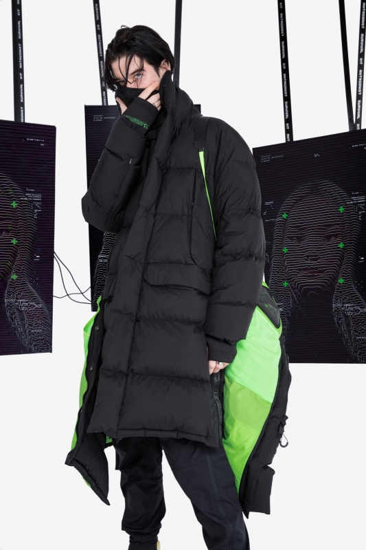 Safe_expression выходит ограниченным тиражом и включает черные и неоново-зеленые футболки, свитшоты, худи и длинные пуховики. Коллекцию отличают эргономичная геометрия кроя и минималистичный выразительный дизайн при полном оснащении для городской жизни.