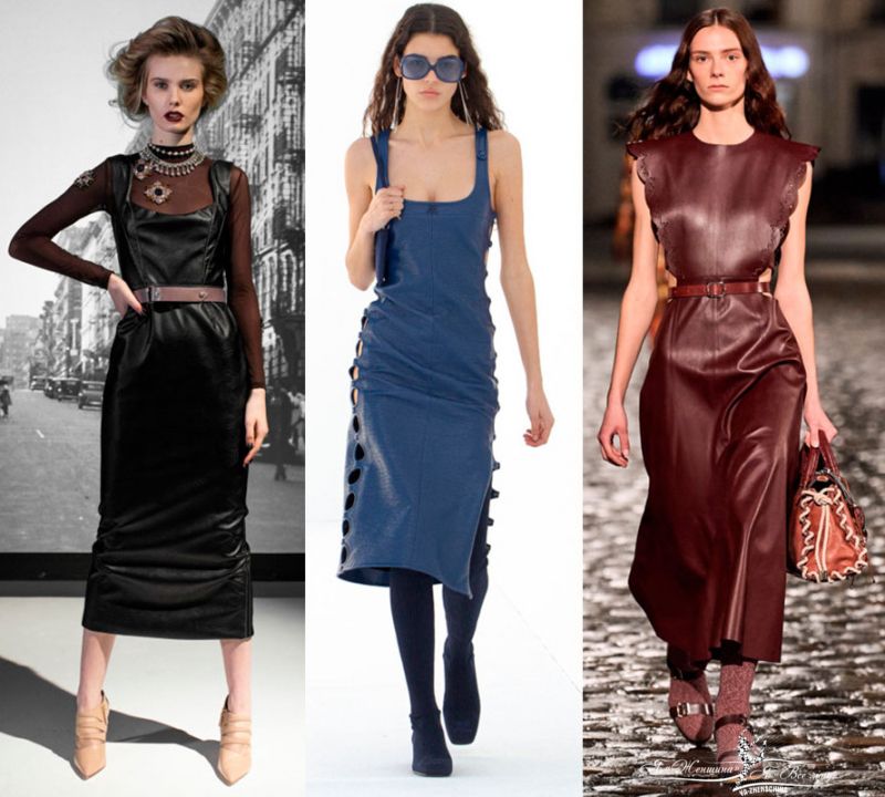 Если выбрали черный кожаный сарафан, наденьте под него водолазку или плотные колготки. Обувь на плоском ходу также снизит градус сексапильности наряда.