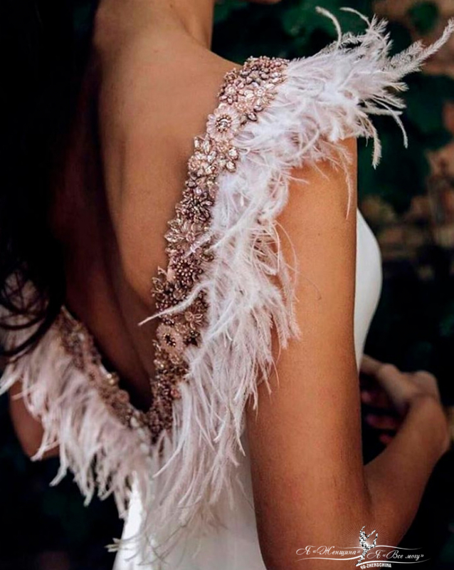 Перья, как и блёстки являются трендом 2022 года и, конечно же, не смогли обойти мир свадебной моды. Перья прекрасно декорируют свадебные платья, придавая образу неповторимую романтичность. Модная индустрия давно создает искусственные перья хорошего качества, поэтому можете не беспокоиться за жизнь и здоровье птичек.