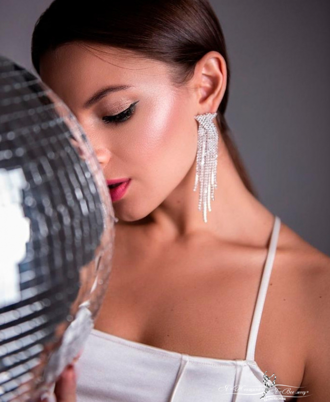 Крупные серьги и, конечно же, блестящие, вы же помните главный тренд 2022 – больше блеска.