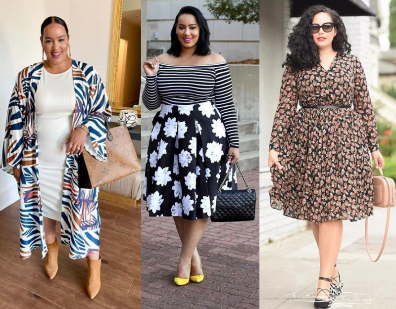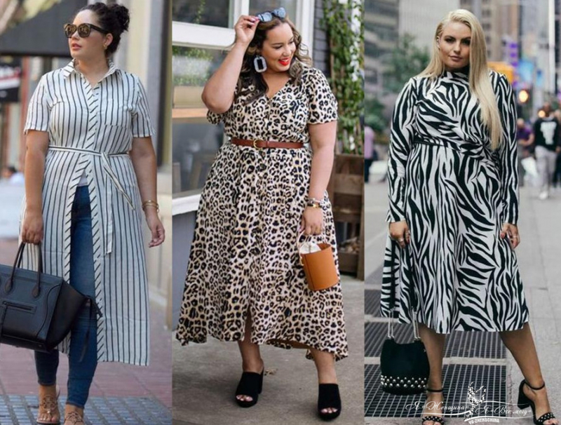 В магазинах для полных женщин много аляпистых нарядов немодных расцветок. Выбирайте неброский цветочный принт, горошек, полоску, животный принт и клетку. Одежду не базовых расцветок не покупайте.
