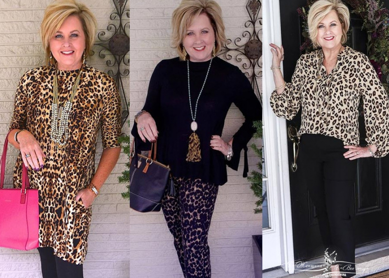Комбинируйте леопардовые блузы, туники с черным низом.