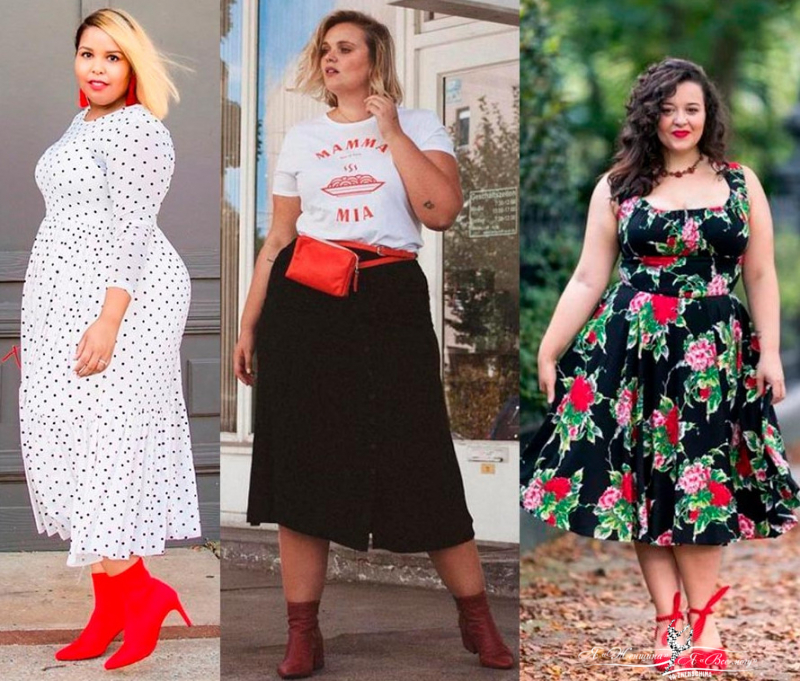 Полная женщина у мужчин часто ассоциируется с достатком, жизнерадостностью, веселым и страстным характером. Если вам присущи эти черты, то подчеркните их в своем образе яркими акцентами: сумкой, туфельками, помадой.