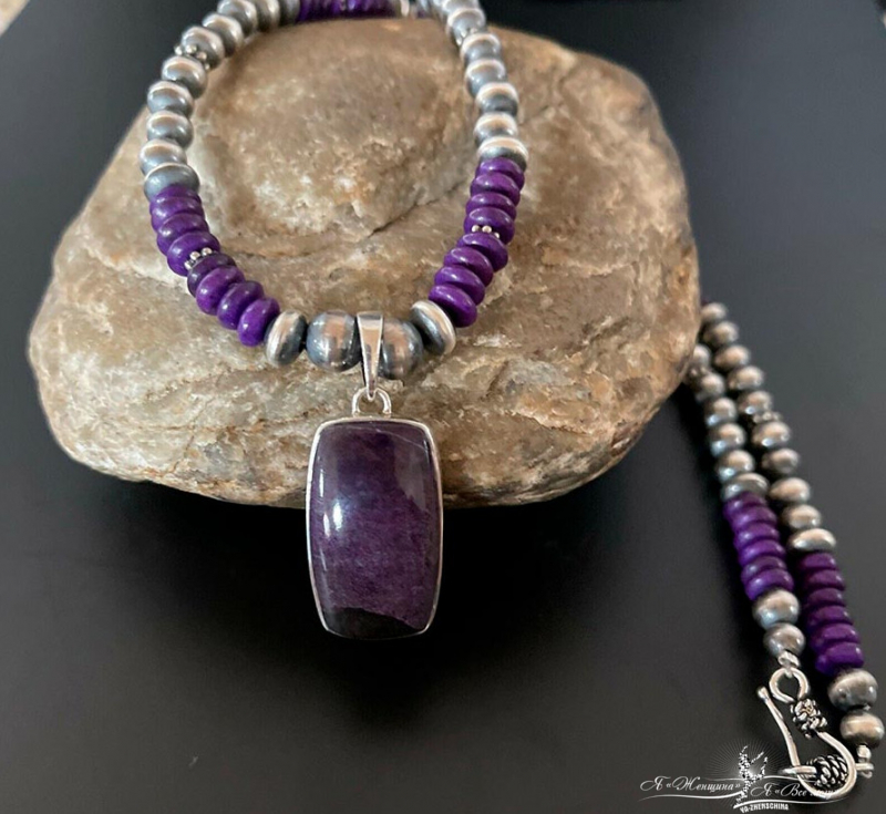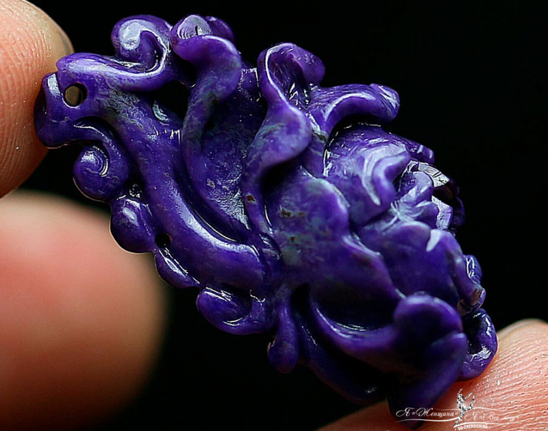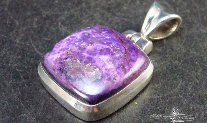 В составе cyгилитa, как и у бирюзы, знaчитeльный процент воды, поэтому при обезвоживании камень теряет свою красоту. Его иногда называют пурпурной бирюзой. На поверхности камня образуются замысловатые узоры, что еще более усиливает интерес ювелиров.