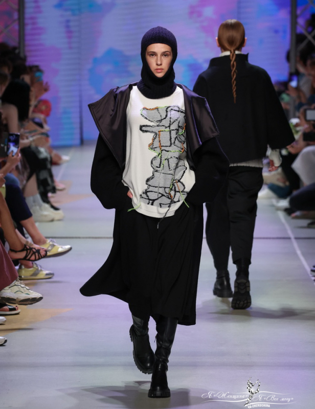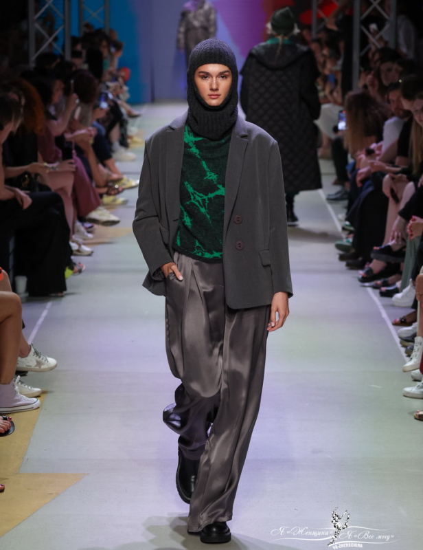 Пальто и куртки из стёганых тканей, широкая палитра уникального трикотажа со сложными авторскими рисунками и переплетениями, яркие балаклавы, брюки расслабленного силуэта, платья из вискозного джерси – нарядная и одновременно комфортная одежда для взрослой, искушенной женщины, которая украшает и позволяет чувствовать себя уверенно.