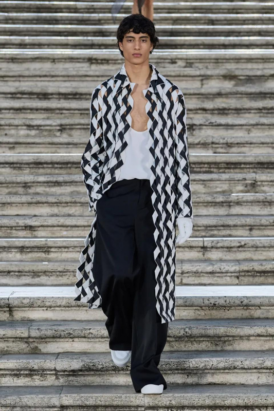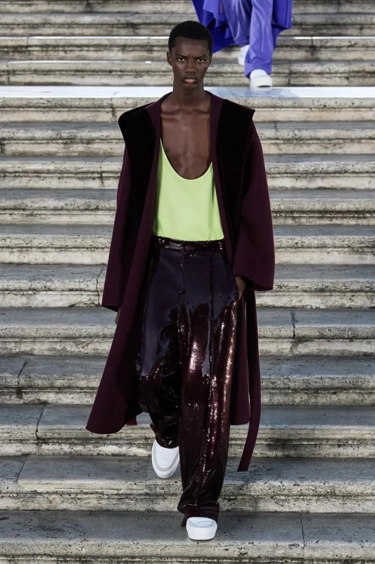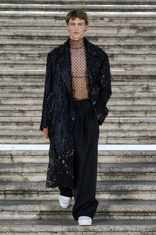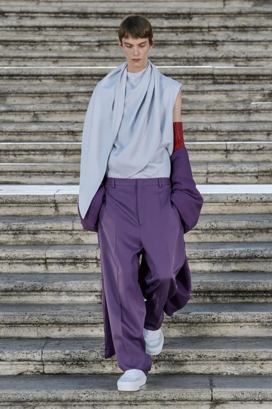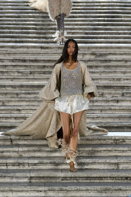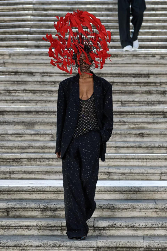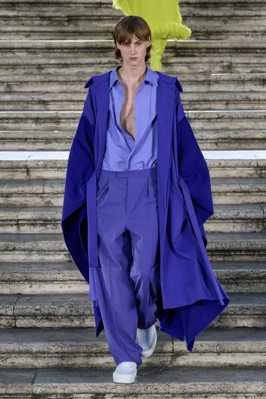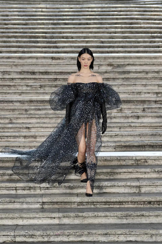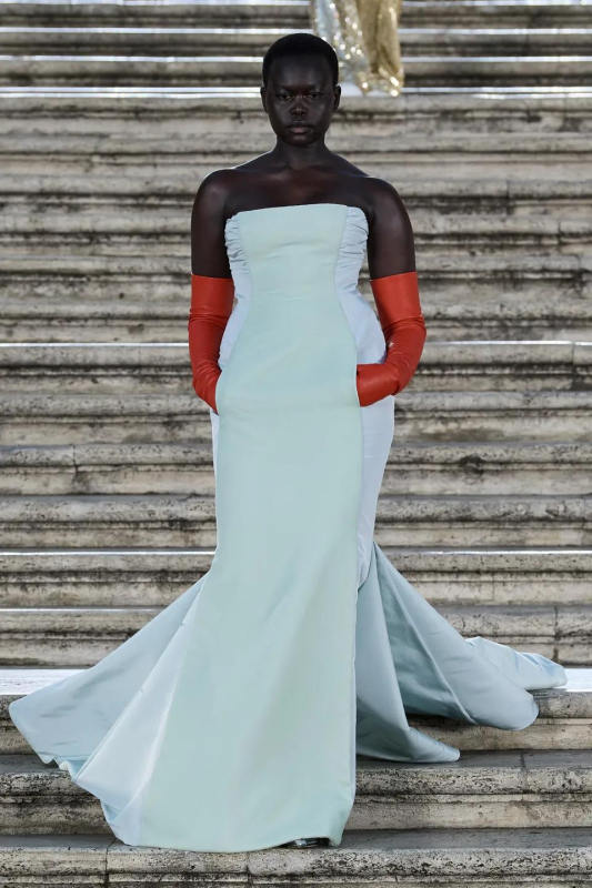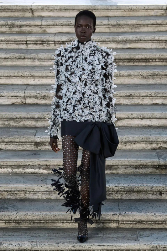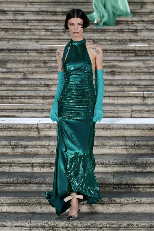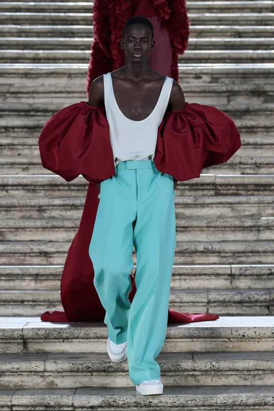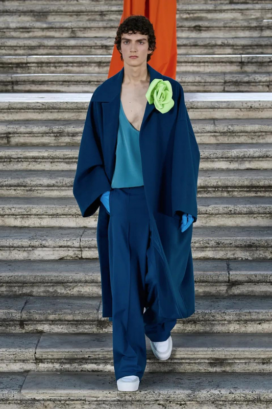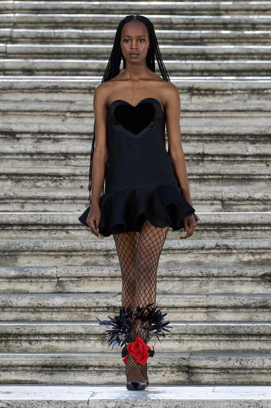Прошлым вечером в Париже свою новую кутюрную коллекцию для Valentino представил Пьерпаоло Пиччоли — она получила название The Beginning. В этом сезоне дизайнер вновь активно работает с цветами: в прямом и переносном смысле. На подиуме мы увидели буйство ярких красок, а также отсылки к образам живых цветов: модели выходили на подиум в головных уборах-бутонах. Что касается оттенков, то тут Пиччоли показал богатую палитру, которая плавно сменялась вместе с настроением: в начале пышные платья, накидки и костюмы были окрашены в алый, затем появился уже фирменный розовый, который сменился на фиолетовый, кислотно-зелёный и оранжевый. «Отдыхом» от красок стали прозрачные платья и топы серебристого цвета: сияние — ещё один большой тренд коллекции.