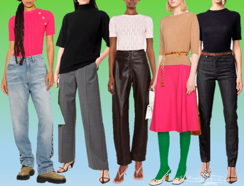 В моде заниженная талия, но укороченные свитера лучше носить с джинсами и юбками с высокой посадкой на талии.