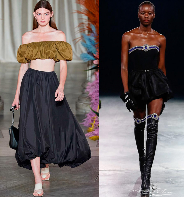 Этот тренд пока не распробовали полностью все потребители моды, но среди фэшн-блоггеров и на подиумах он появляется всё чаще. Хороши юбки-баллоны как мини, так и миди длины. Классно смотрится в романтическом и балетном стиле, но выглядит «незаезженно» благодаря своей необычной форме.