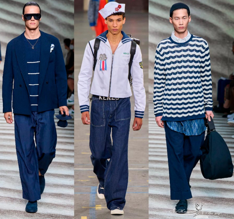 Морской мужской стиль подходит для лета. Прямое прочтение морского стиля – это тельняшка, синие широкие брюки, но с размером и формой полоски на тельняшке можно экспериментировать, как и с фактурой брюк.