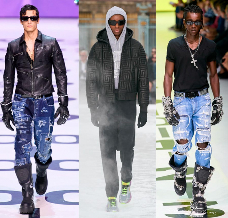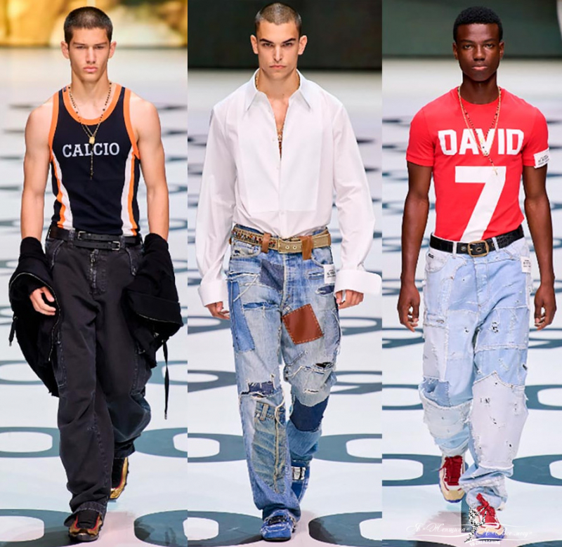 В моде широкие мужские джинсы. Утрированный объем ломает правильные мужские пропорции, но с модой сложно спорить.