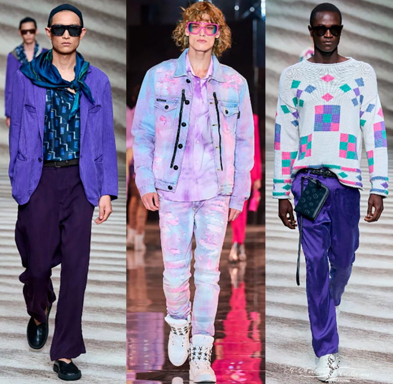 Некоторые бренды возвращают в моду акварельный тай-дай. Фиолетовый помогает создавать комплекты в творческом стиле.