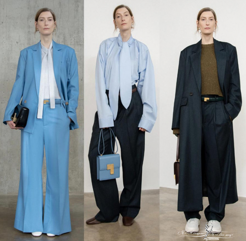 Макро тренд – подчеркнутая талия. Одежда сверху больше не должна создавать гипертрофированный объем, оверсайз в основном в нижней части образа при необходимости.