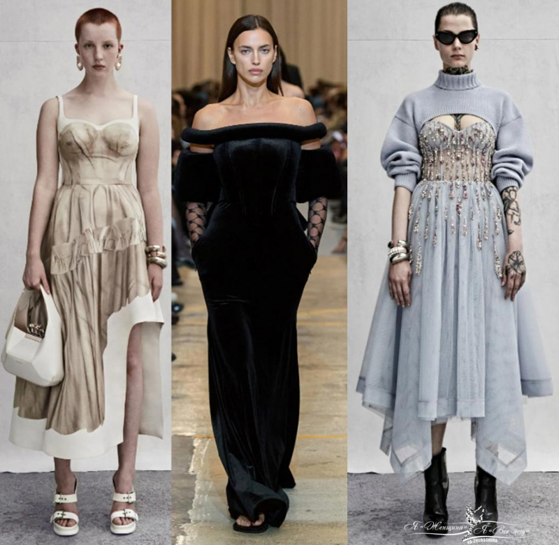 Эстетика с налетом супер винтажа XVI-XIX веков. Кринолины, чепцы, подштанники, банты, силуэт ампир. На каждый день сочетайте топ в стиле ампир и рваные джинсы, корсет и длинную юбку. Черпаем вдохновение у Alexander McQueen.