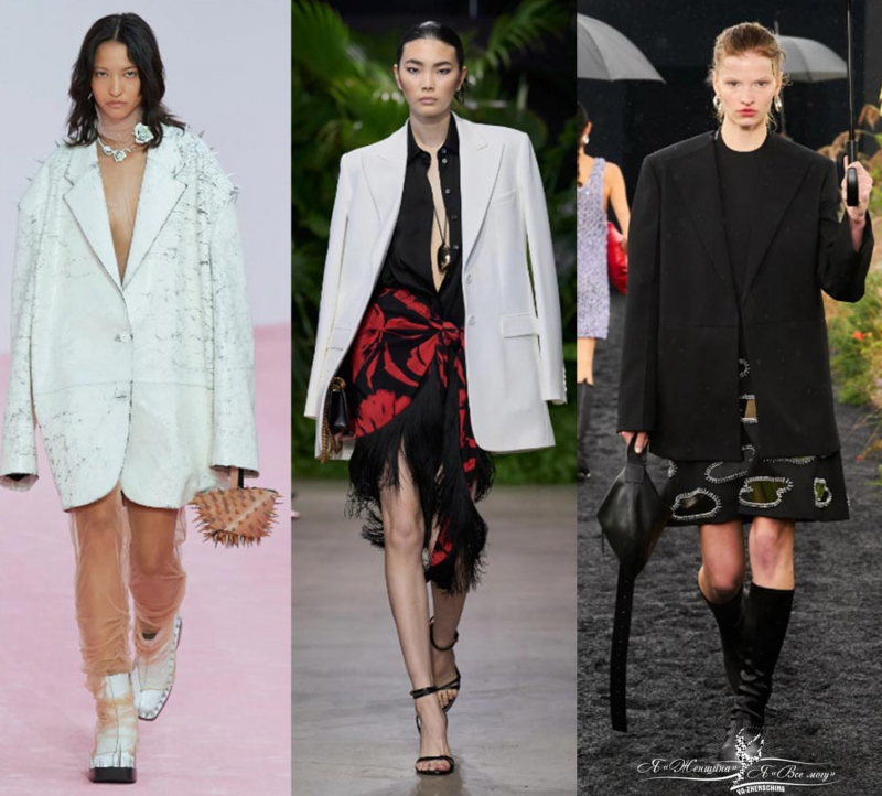 Что-то среднее между блейзером и полупальто. Из моды не выходит, вдохновляйтесь моделями Michael Kors, Bottega Veneta, Stella McCartney, Miu Miu. Применяйте в разных комбинациях: с шортами, в виде костюма двойки. Уличный тренд — пиджаки с легинсами.