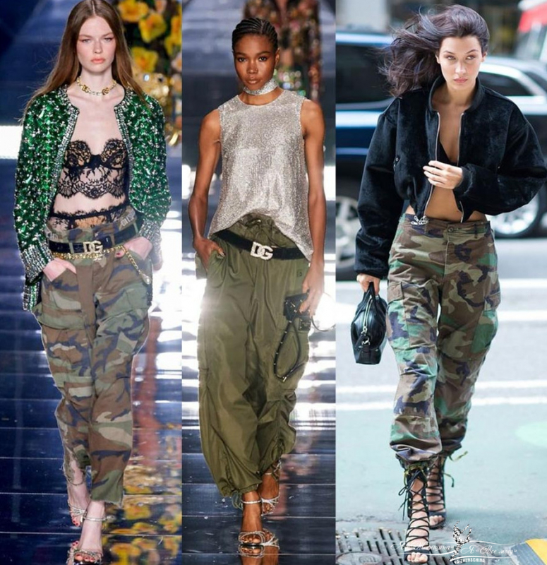 Военный стиль подчеркивает жесткость характера женщины, если хотите придать своей романтичной натуре маскулинности, то добавьте в образ немного камуфляжа.