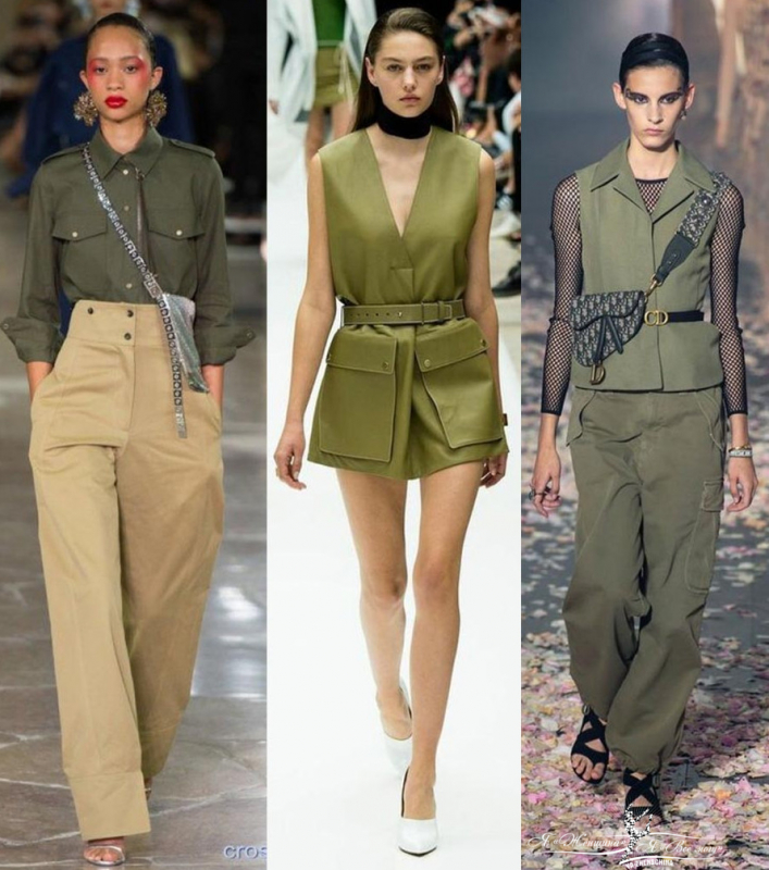 Модная женская одежда в стиле милитари от брендов 2023