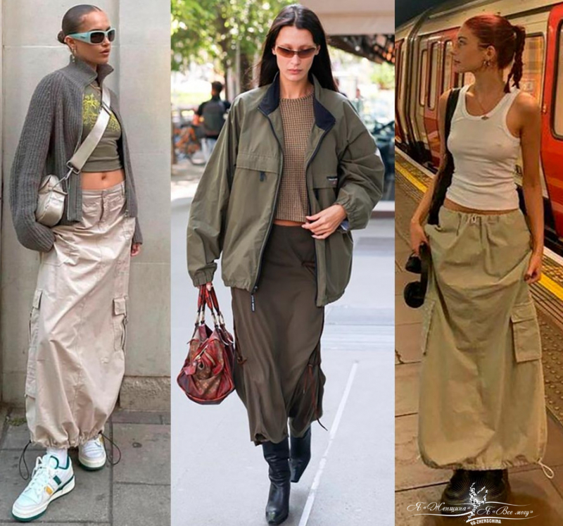 Это тоже объемные юбки, похожие на карго, их также нужно носить с облегающим верхом.
