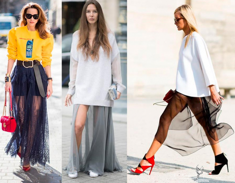 Прозрачные юбки, как и юбки кроше, носим с удлиненным верхом.