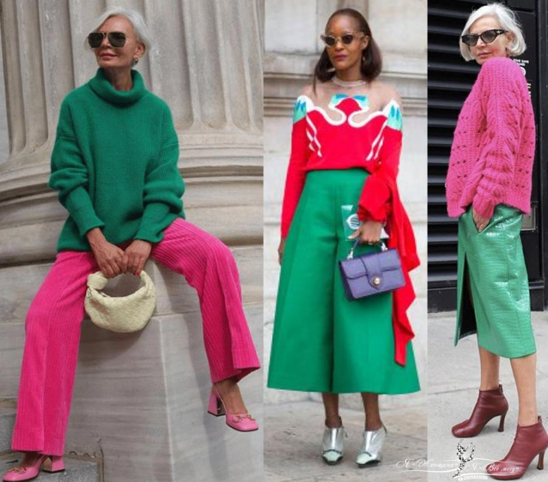 Не обязательно искать верх и низ ярких цветов, блоком в образе может быть сумка или обувь.