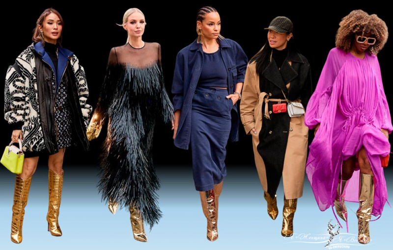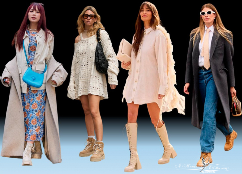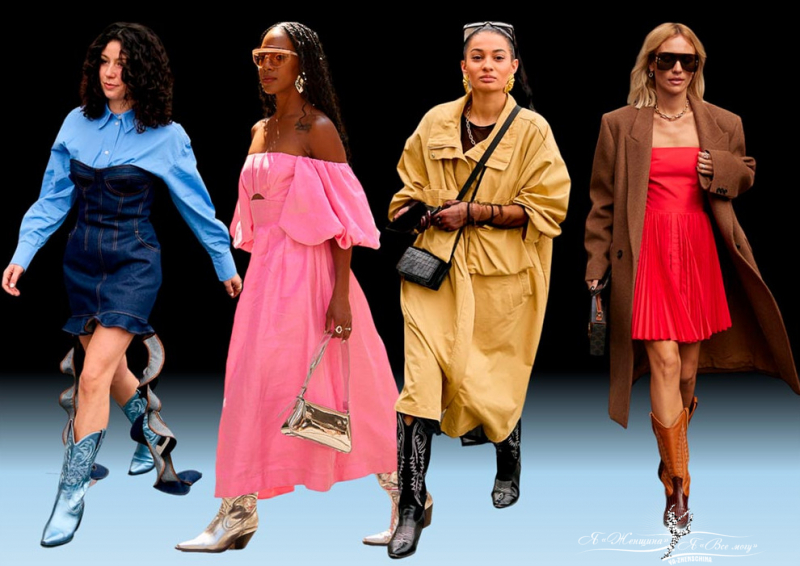 Если рассматривать образы с недели моды, то высокие сапоги половина инфлюенсеров носят с летними платьями. Представить такое сочетание в России летом сложно, но вечерний выход в платье и сапогах допустим.