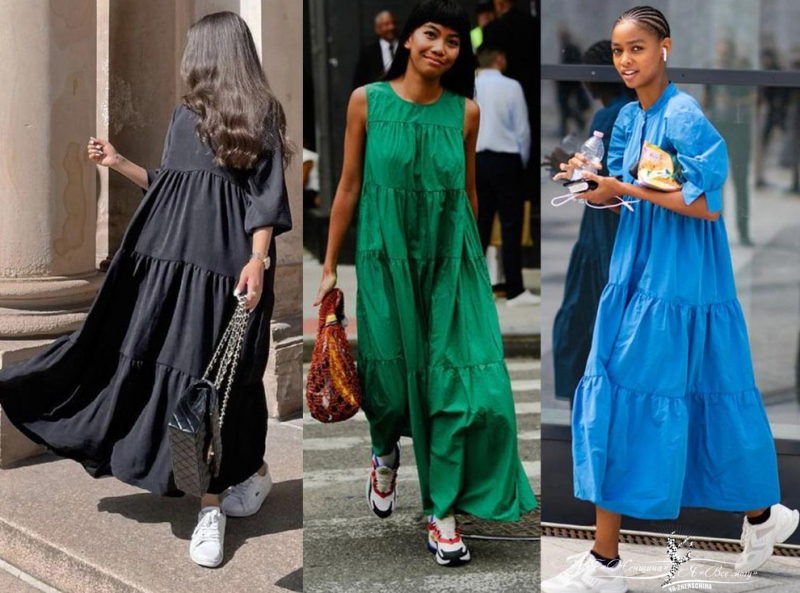 Ярусные платья вышли из моды два года назад, тренд снова возвращается. Красиво смотрятся с сандалиями на плоском ходу и невысоком каблучке.