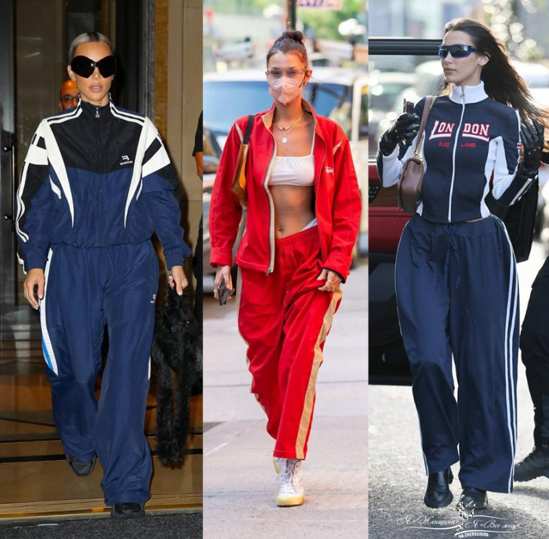 Вместе с модой на гламур и приторною женственность соседствует спорт-шик. Спортивные брюки широкие с лампасами, а олимпийки облегают фигуру. Под олимпийку, если позволяет фигура, носим кроп-топ, если не позволяет – белую майку.
