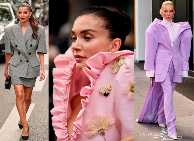 Самый странный тренд, но вписывающийся в ретро движение моды. Объемные плечи должны сильно уродовать пропорции. Но талия в образах подчеркнута, это отличает тренд от моды на оверсайз пиджаки прошлых сезонов.