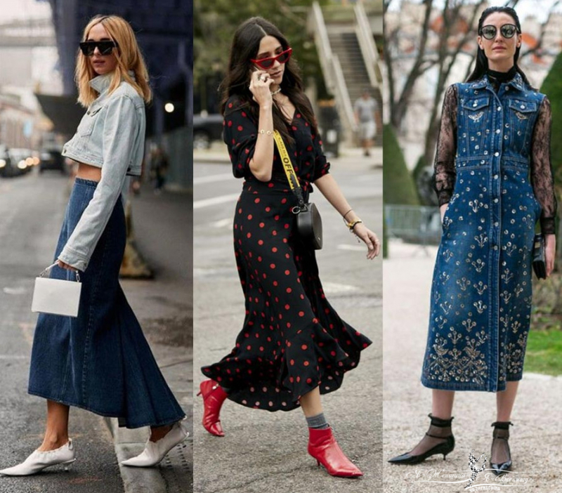 Самое трендовое сочетание – казаки с длинной юбкой. Если вы не хотите заправлять брюки в ковбойские сапоги, то спрячьте голенище внутрь брючины. Визуально они будут тогда смотреться, как обычные ботильоны. Необязательно выбирать модель с широким голенищем, скошенного каблука и острого носика будет достаточно. Широкое голенище утяжеляет образ. Качественные казаки с широким голенищем, кожей внутри и снаружи можно носить летом.