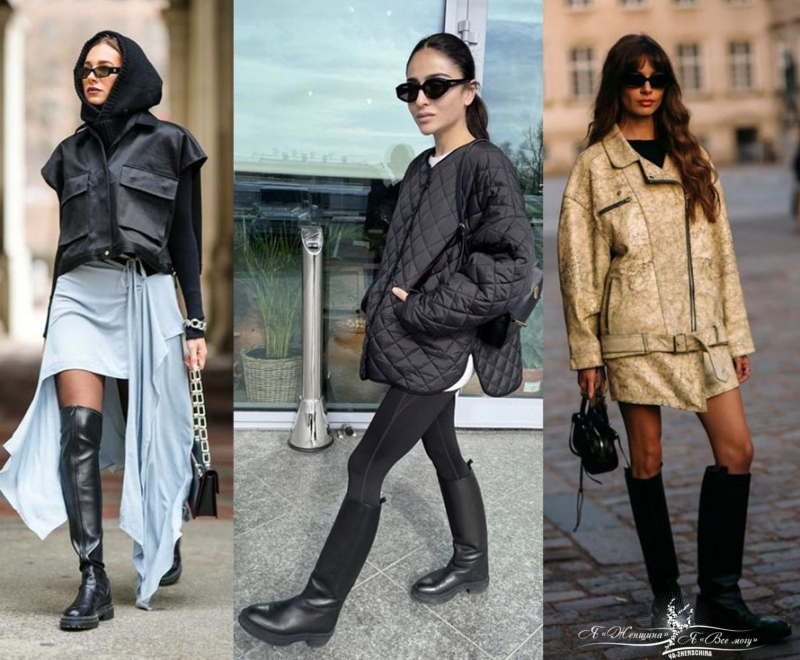 Это не только армейские ботинки, а высокие ботфорты на шнуровке, белые ботинки с круглым мысом или ботильоны из рыжей замши.