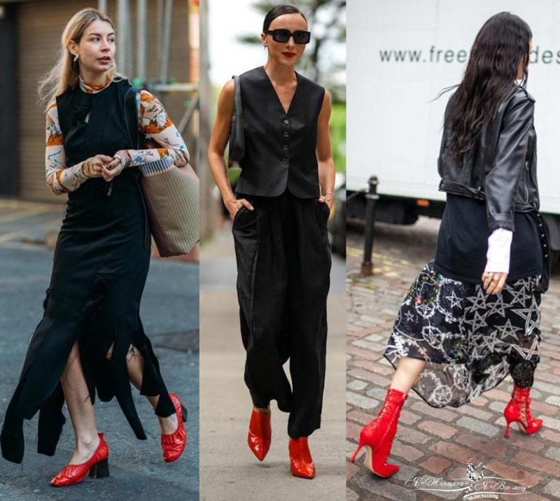 Красный цвет – тренд осеннего сезона не только в одежде, но и в обуви. Стильно смотрятся ботильоны-носки красного цвета.
