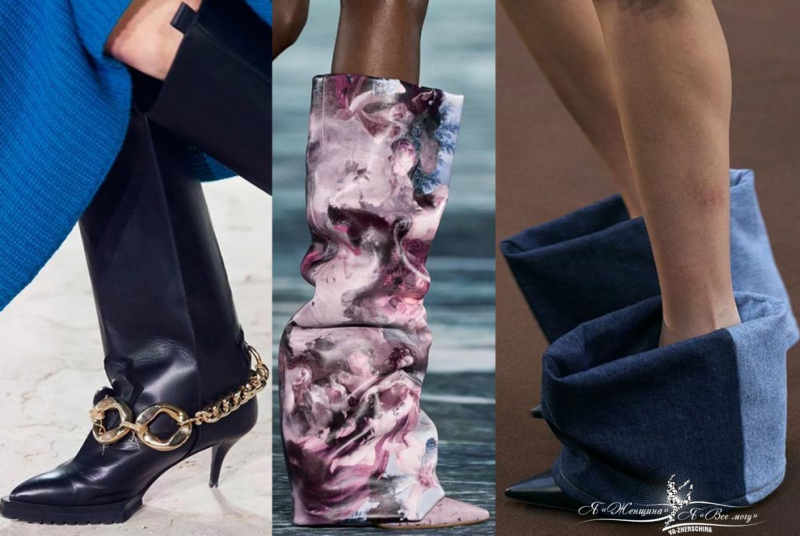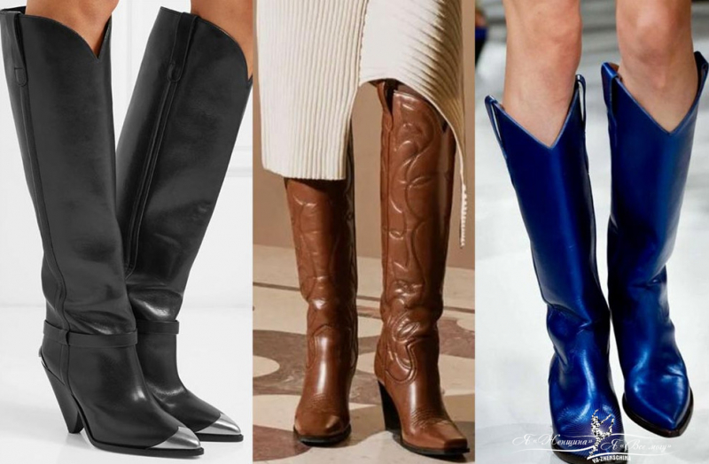 Сапоги пришли на смену ботинкам, которым в последних модных сезонах уделялось много внимания. Радость для женщин, которые любят носить платья и юбки. Актуальны сапоги с острым мысом, сапоги-трубы, жокейские.