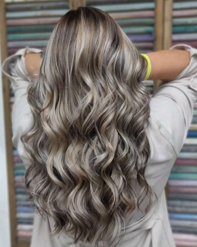 Фантазеры-стилисты сравнивают оттенок с тем, как грибы выглядят после дождя. Издалека цвет можно перепутать с пепельным блондом. На самом деле он более многогранный, а окрашивание можно смело называть 3D. Фоном служит темно-русый или средне-русый оттенок. Акценты рассавляют с помощью нескольких холодных цветов — от платины до серебристо-сероватого. К этому окрашиванию стоит присмотреться тем, кто мечтает о супергустых волосах. Благодаря акцентным прядям в нескольких вариациях цветов, мастер фактически сделает вам визуальное наращивание.