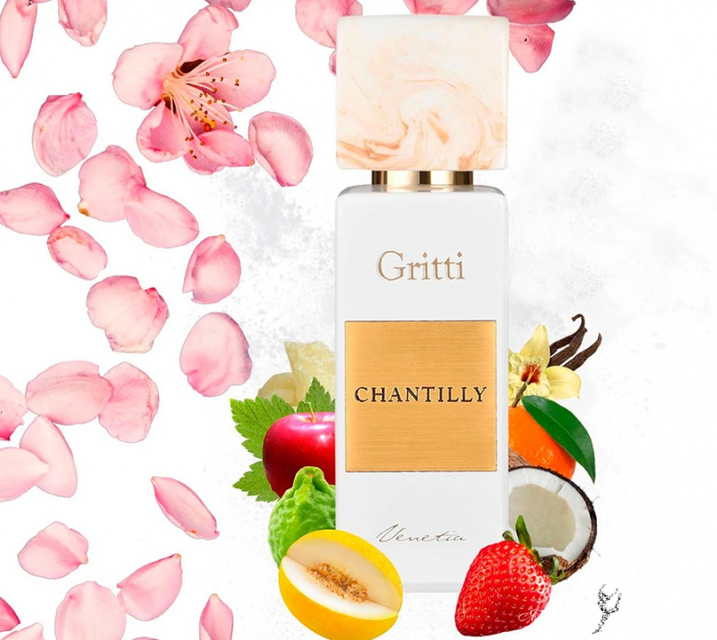 Аромат для женщин, созданный итальянским брендом Gritti, выпущен в 2018 году. Он принадлежит к группе Цветочные Фруктовые Сладкие. Аромат Шантильи создал парфюмер Luca Gritti. Тонкая нежная композиция, прозрачная, как французское кружево Шантильи, которое и вдохновило парфюмера. В верхних нотах композиции звучит аккорд сладких ягод клубники и сочной дыни, который обрамлен свежестью цитрусовых – мандарина, апельсина и бергамота.