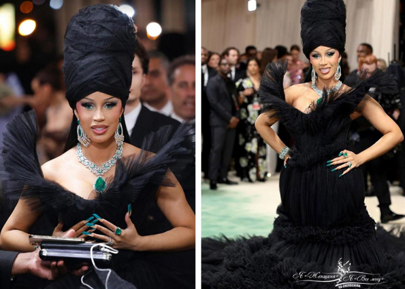 Карди Би в платье из фатина от Giambattista Valli.