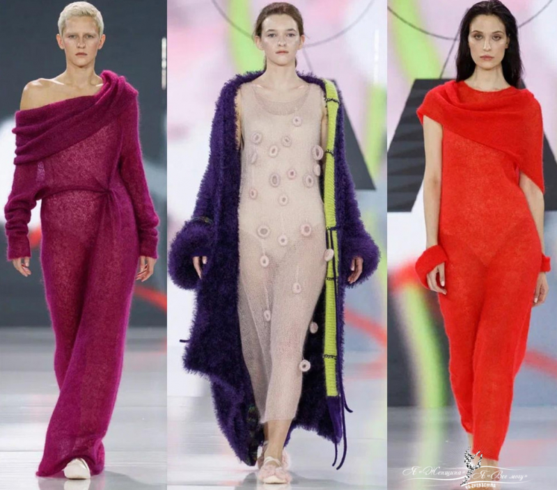 Вязаные изделия с добавление шелковой нити обволакивают хрупких моделей, как коконы.