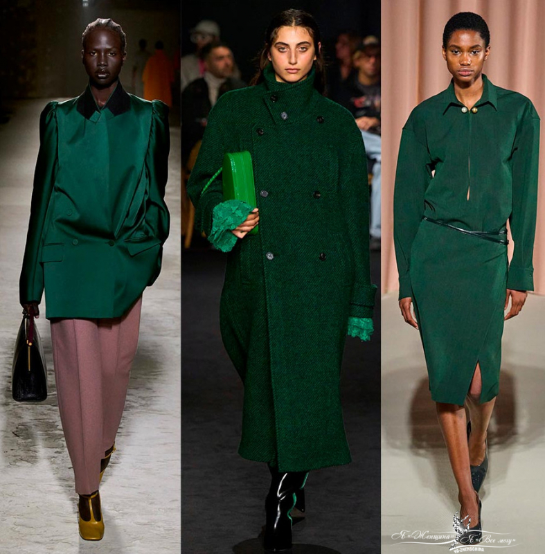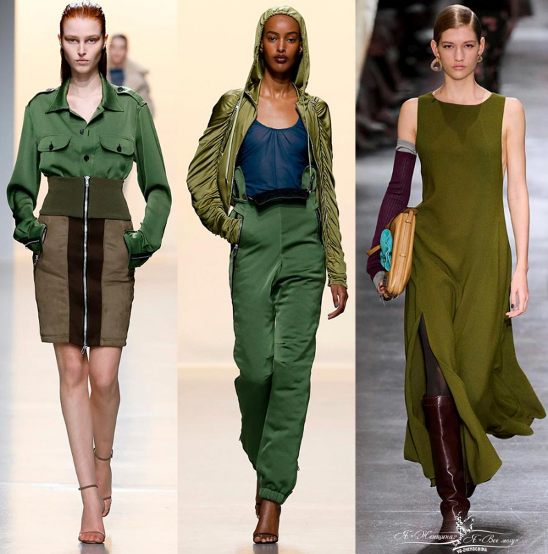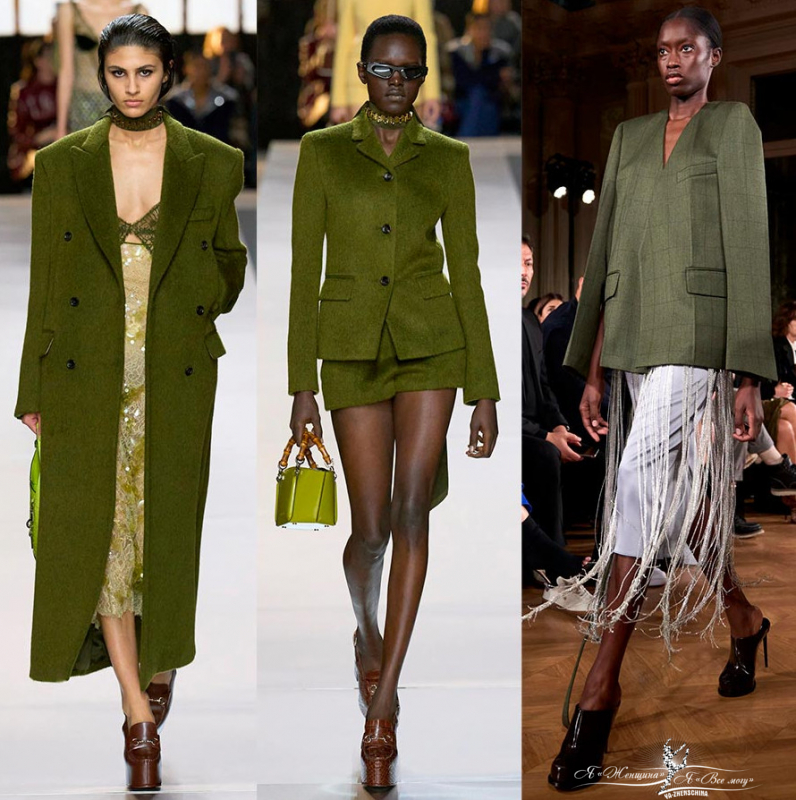 Поэтому обратите внимание на образы травяных оттенков, их множество. Каждая женщина сможет найти свой цвет – от приглушенных до самых ярких и глубоких насыщенных.