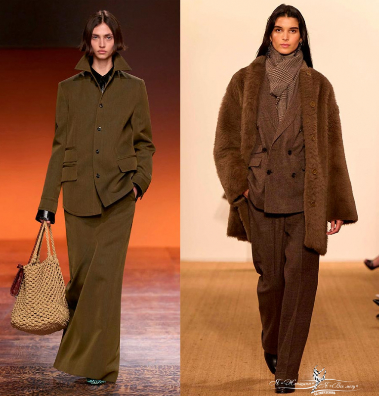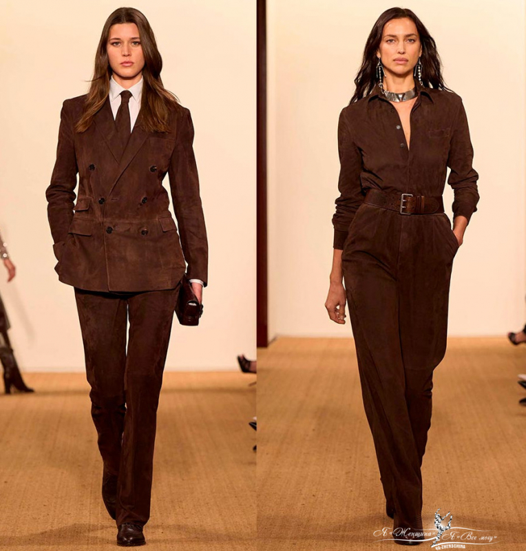 А здесь все просто и скромно. Коричневый цвет близок к естественным оттенкам, которые встречаются в природе. Поэтому он всегда будет в моде. Коричневые деловые, повседневные элегантные образы. Этот цвет часто встречается почти в каждом стиле, но всегда его используют в стиле вестерн, а также в тех коллекциях, где есть кожаные изделия.