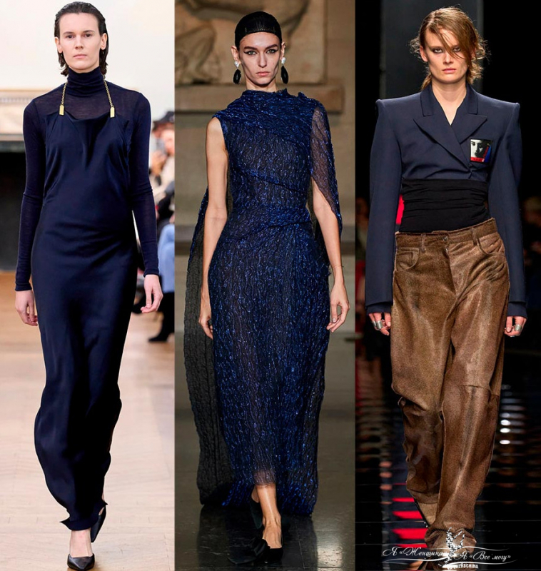 Темно-синий цвет придает образу элегантность и роскошь одновременно. С ним можно экспериментировать, создавая роскошные вечерние наряды и элегантные костюмы.