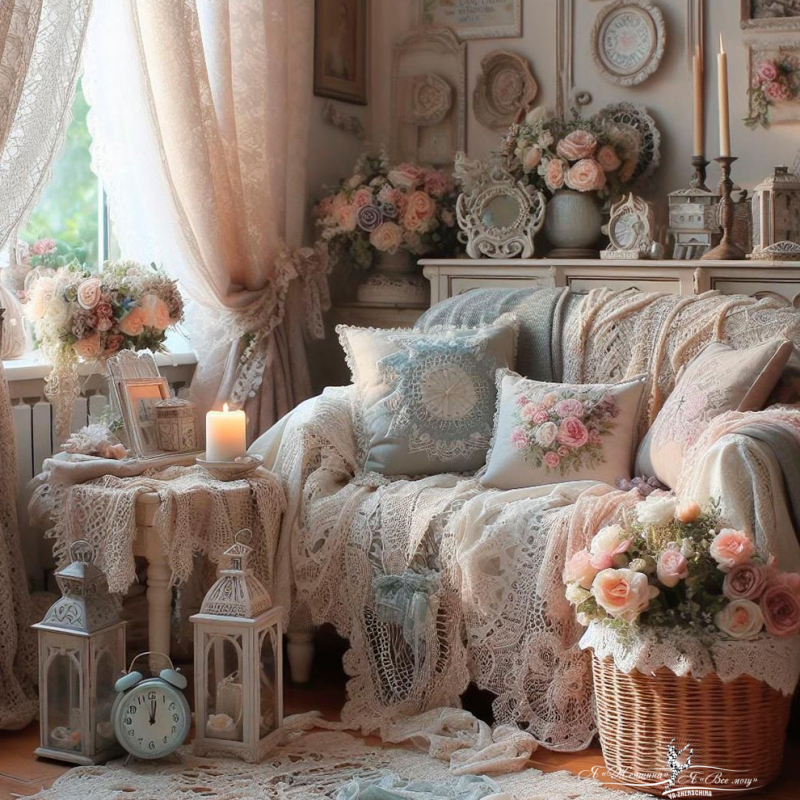 Стиль шебби-шик позволит вам создать атмосферу волшебной сказки.