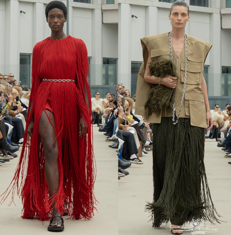 - Вечерние и коктейльные платья позволяют раскрыть тренд в максимальной красоте. У многих брендов есть платья с бахромой, в том числе очень длинной.