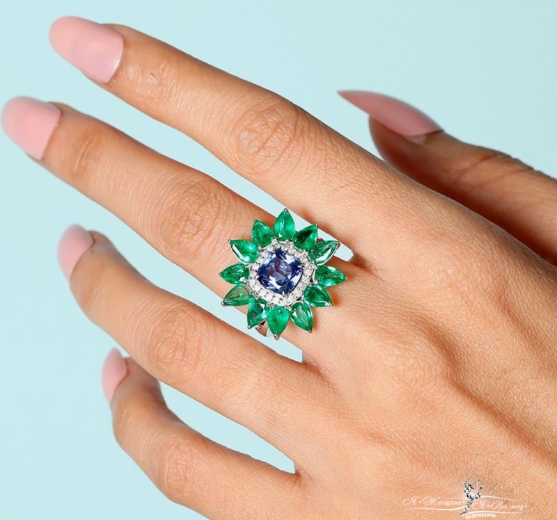 Цветочные гарнитуры из драгоценных металлов и ярких самоцветов помогают сделать образ эффектным и подчеркнуть свою исключительность. Все изделия в гарнитуре выполняются в едином дизайнерском решении. Эти комплекты идеальны для торжественного случая. Они помогают создать роскошный образ и подарить ощущение уверенности в себе. Например, гарнитур, состоящий из кольца, серёг и подвески, где каждое изделие несет в себе образ какого-то цветка, смотрится выразительно и ярко.