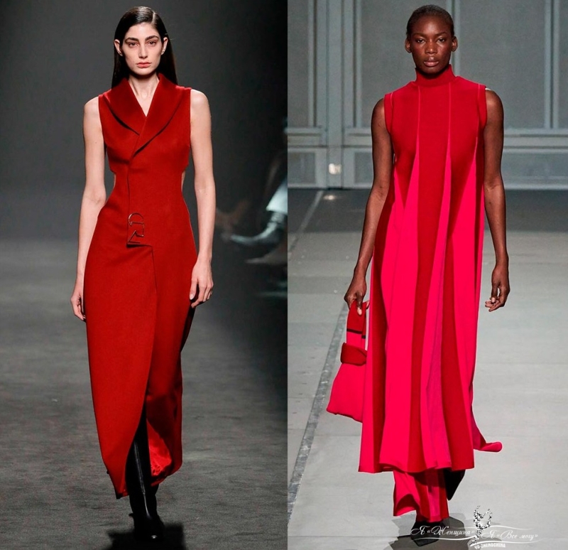 Если заглянуть в коллекции прошлого сезона, там можно найти много красных платьев, а если провести обзор новых, там еще больше. Наряды красной цветовой гаммы холодных и ярких теплых оттенков есть у многих брендов, их так много, что если не учитывать черный и белый, которые всегда в большинстве, красный можно считать одним из главных в холодном сезоне 2025-2026, и это обилие красных оттенков объяснимо тем, что осенью и зимой и так много черного и белого в моде и жизни, поэтому многим захочется добавить в образы яркости. При этом красный тоже очень универсален и хорошо сочетается с темными цветами, которые так практичны в холодное время года. Если же мы надеваем платье, то с ним еще проще создать цельный гармоничной образ.