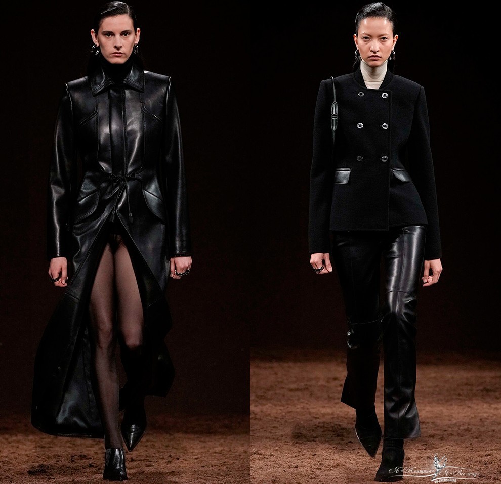 В коллекциях представлено богатство выбора, поэтому в сезоне 2025-2026 в моде любые предметы гардероба из кожи, от коротких шортов, топов и мини-юбок, до кожаных плащей длиной в пол и костюмов с юбкой или брюками.