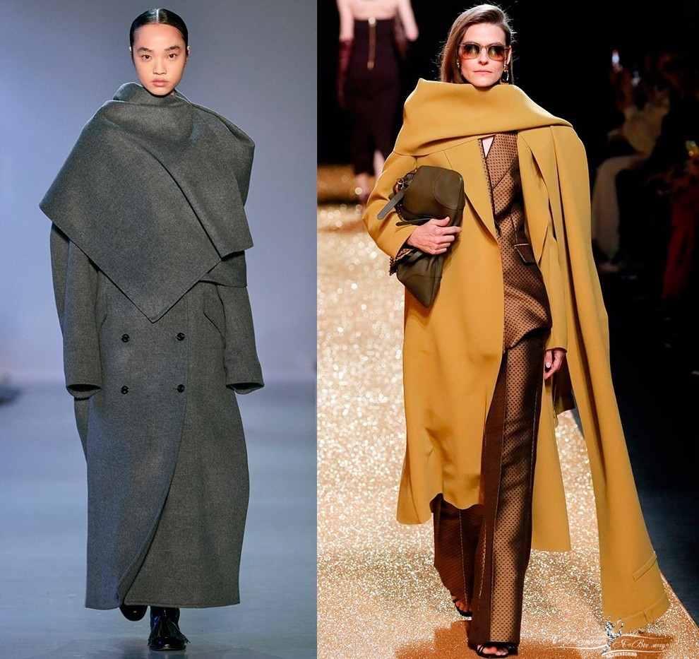 В новом сезоне будет популярным пальто, и лучше – в стиле оверсайз, а еще лучше, чтобы в дополнение к нему на плечах был широкий палантин из того же материала. Конечно, такая идея не подходит многим. Пальто и широкий палантин создает большой объем, а это возможно только высоким и стройным, визуально удлинит силуэт длинный шарф.
