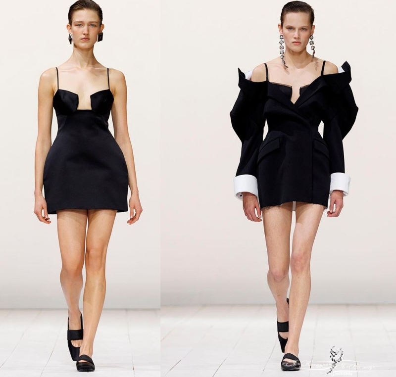 Очень примечательные платья получились у Stella McCartney, они тоже очень короткие, но каждое по-своему нарядное – одно полностью декорировано перьями и превращает вас в изящную птичку, другое платье на одно плечо и с драпировками, что создает изысканный элегантный образ. А вообще, любое мини-платье само по себе вызывает вау-эффект, поэтому можно выбрать модель в стиле минимализма, но из дорогой качественной ткани, которая сможет красиво смотреться и окажется максимально комфортной к телу.