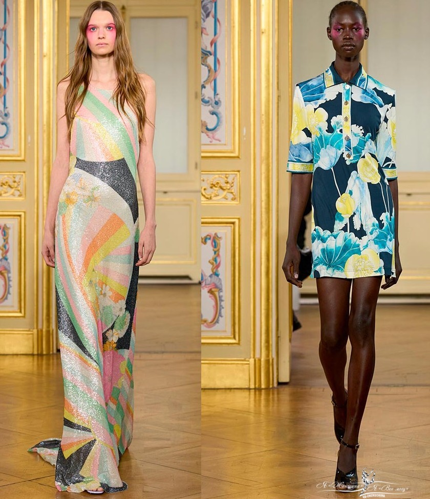 Струящиеся платья, объемные силуэты, преувеличенные пропорции, драпированные мини-юбки, платья-баллоны восхищают своей экстравагантностью. Гигантские цветы, напоминающие экзотические сады, доминируют на подиуме.