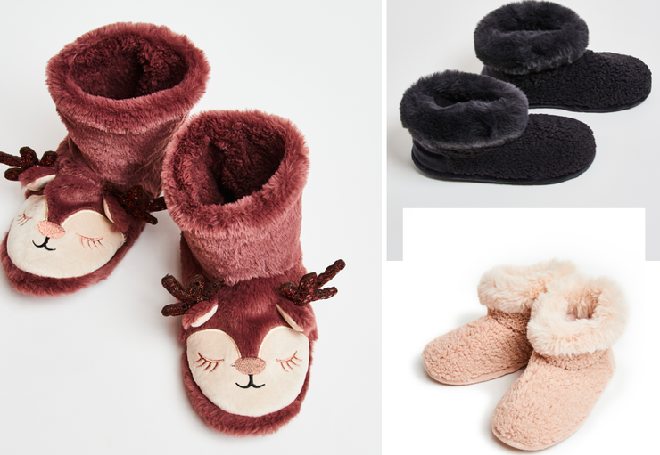 Выбор обуви — еще один важный пункт. Если предстоит домашняя вечеринка, то мягкие уютные сапожки-тапочки — лучший выбор. Это и удобно, и модно: неожиданный тренд, появившийся пару лет назад, пока не собирается сдавать своих позиций. В качестве альтернативного варианта тапкам можно предложить, например, домашние сапожки, которые «притворяются» носочками. Мы нашли такие в коллекции домашней одежды голландского бренда Hunkemoller.