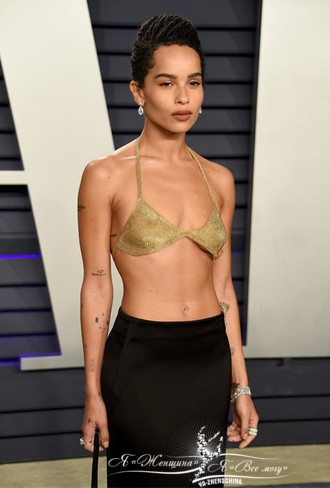 Умение сделать образ простым и при этом выглядеть на острие – качество, которое есть далеко не у всех звезд. Зато этим умением мастерски владеет Зои Кравиц. На вечеринке Vanity Fair в честь премии «Оскар» она решила пойти на компромисс с собой: актриса и дочь Ленни Кравица выбрала экстремально открытый переливающийся лиф от Louis Vuitton и дополнила его сдержанной прямой макси-юбкой.