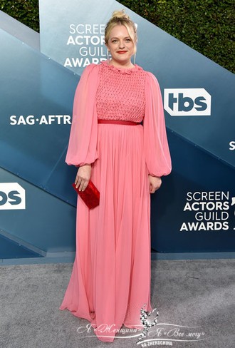 Синтия Эриво появилась в безупречном платье без бретелек Schiaparelli с красным топом и эффектным шлейфом оттенка фуксии, обозначив еще одну тенденцию ковровых дорожек последних кинопремий – ярко-розовый цвет. Такому оттенку в этот вечер особенно благоволили многие звезды: Софи Тернер в Saint Laurent, Кейтлин Дивер в Ralph Lauren, Молли Симс в Rasario, Элизабет Мосс в Monique Lhuillier.