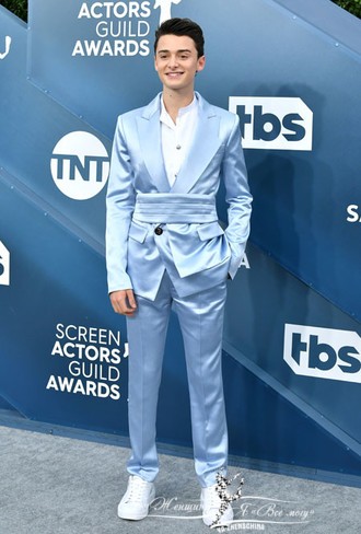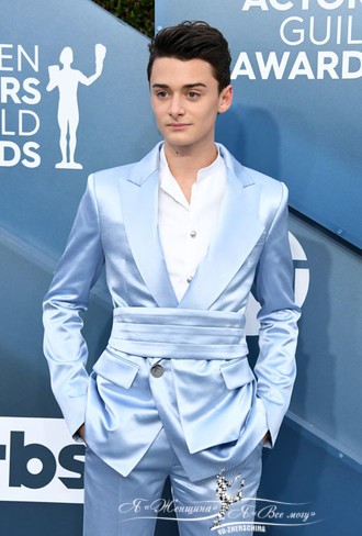 Последнее время особенно интересными становятся образы звездных мужчин – то ли Билли Портер и его необычный стиль сыграли свою роль, то ли мужчины поняли, что вечерние образы на церемониях могут быть разнообразнее, чем привычный всем черный смокинг с белой рубашкой (хотя и так, конечно, тоже хорошо). Особое внимание привлек к себе 15-летний Ноа Шнапп, который появился на серой ковровой дорожке премии в небесно-голубом шелковом костюме от Balmain. Критики поспешили сравнить образ, который для актера подобрал стилист Филипп Ютер, с другим культовым нарядом 2019 года – серебристо-серым костюмом Тимоти Шаламе от Haider Ackermann. Вдохновлялся ли звездный стилист успешным образом другого коллеги по цеху или все это лишь дань актуальным тенденциям – сказать сложно. Но изменения в мужской моде на ковровых дорожках не могут не радовать (читайте также: Кто одевает самых стильных мужчин Голливуда: история успеха Иларии Урбинати).